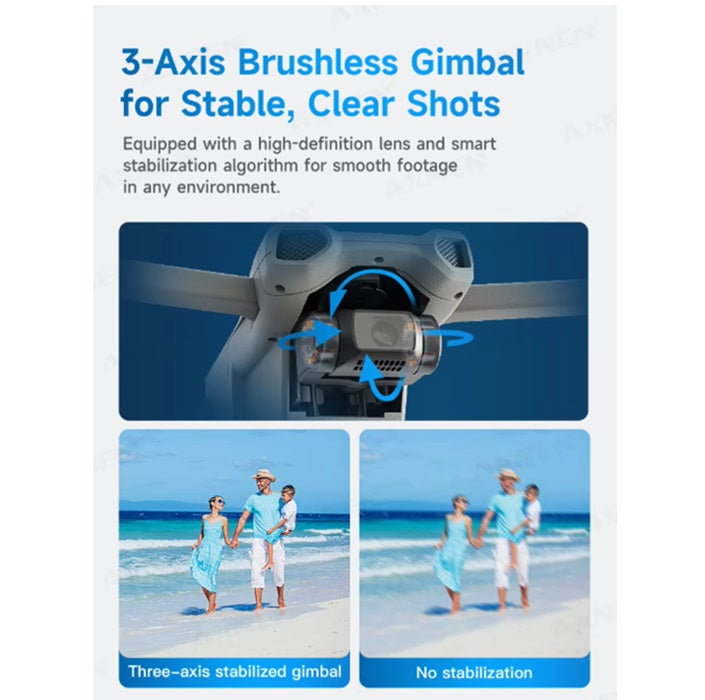 • 3-Axis Brushless Gimbal: Clear, shake-free aerial shots